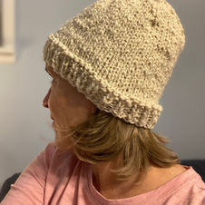Two handspun, hand-made, wool hats